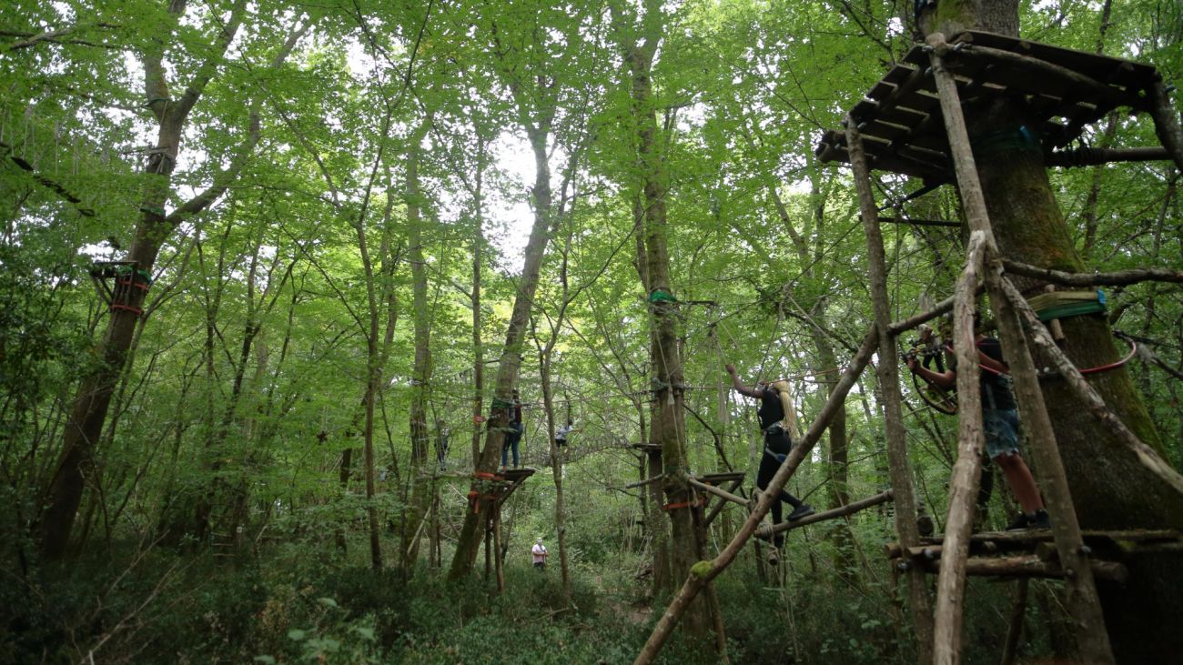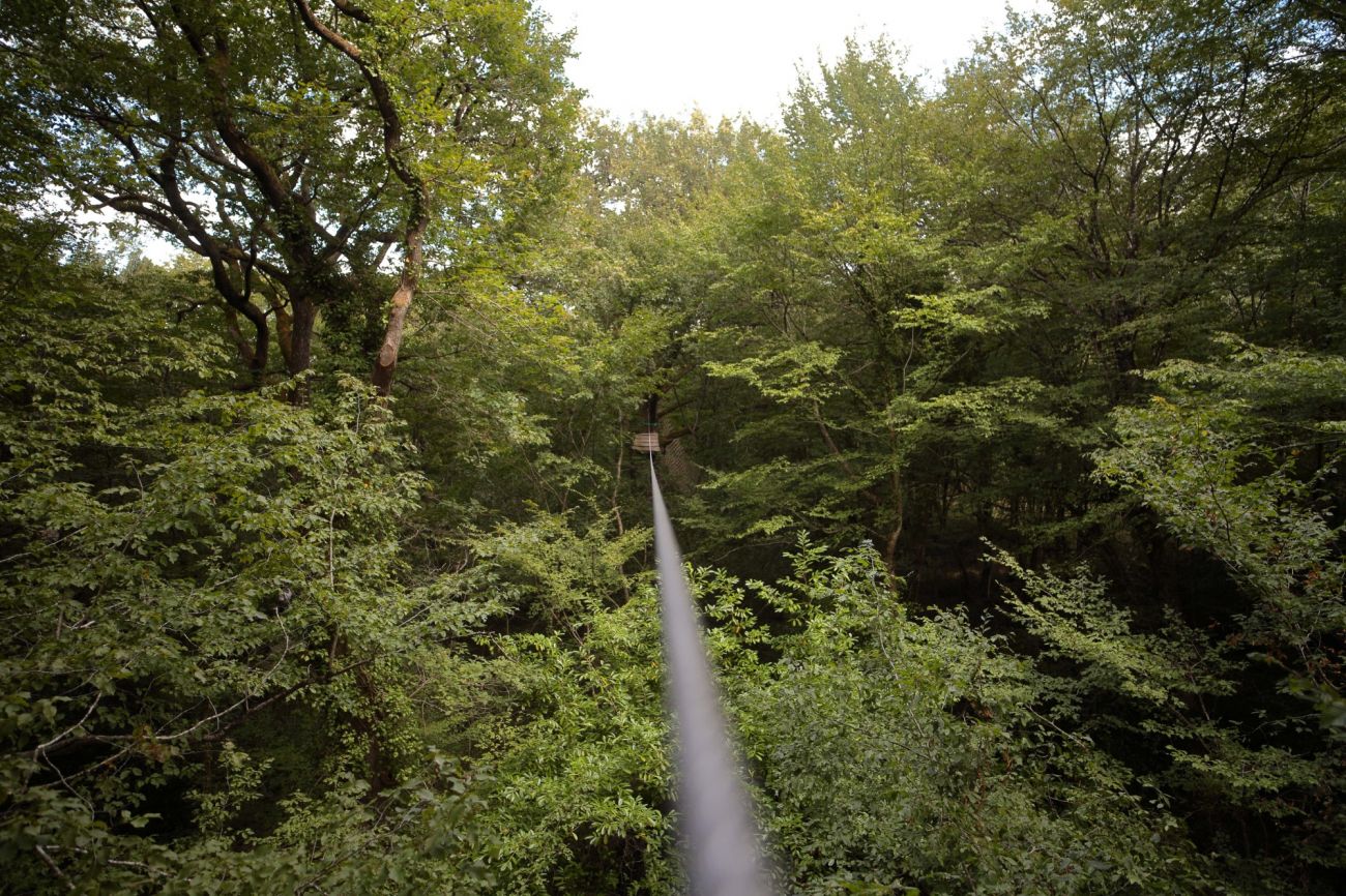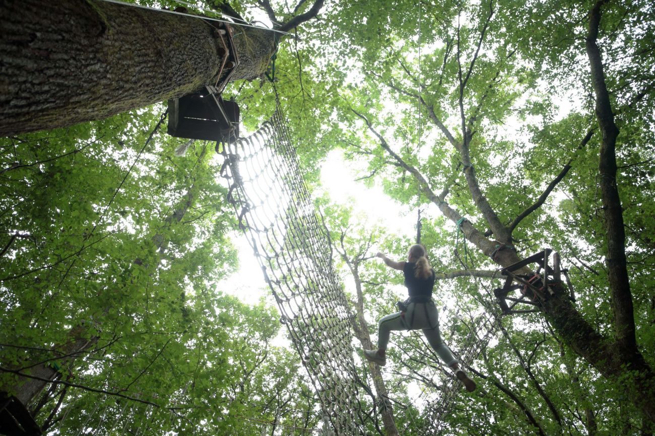 Le sentier perché : Evoluez à votre vitesse dans ce sentier de randonnée de 350m de long et perché jusqu’à 13 mètres de haut dans la cîme de chênes centenaires.