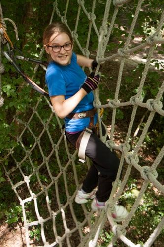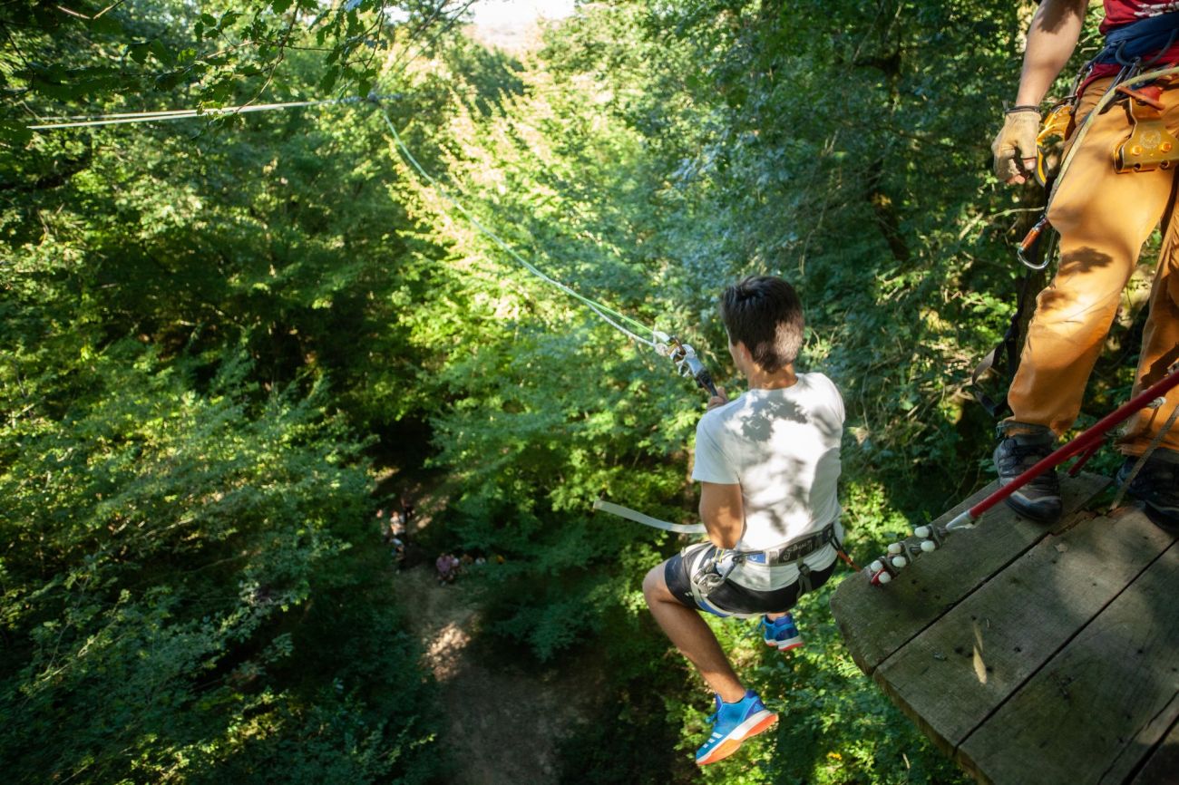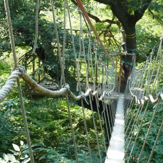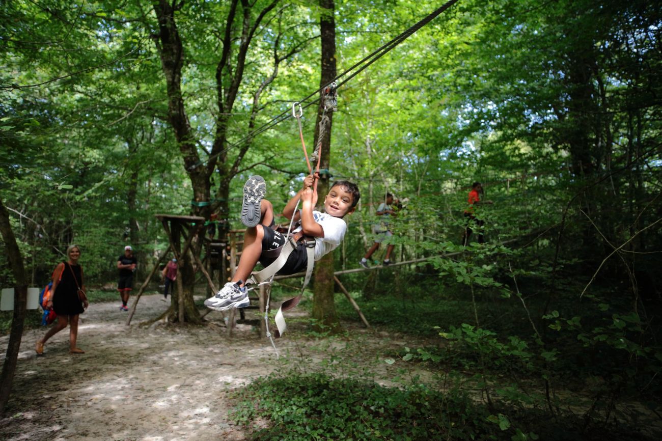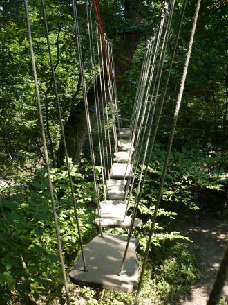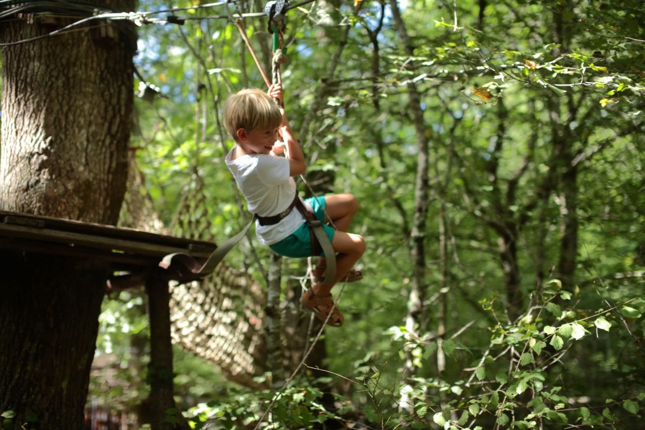 Prenez-vous pour un oiseau et allez d’arbre en arbre à travers la fôret grâçe à ces 13 tyroliennes pour une promenade atypique de 800 m de long. (A partir de 10 ans).